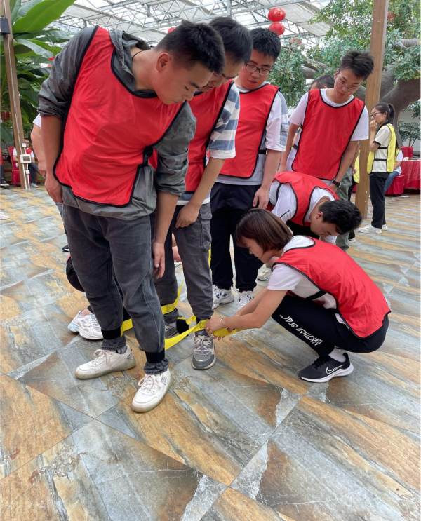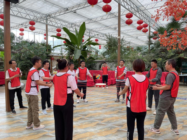 座談會(huì )結束后開(kāi)展了團隊拓展訓練活動(dòng),設置了“同心鼓擊鼓、巨人腳步、一圈到底、縱橫天下軌道傳球、趣味背夾球、不倒森林”等活動(dòng)。通過(guò)分組合作,一起取隊名、選隊長(cháng)、喊口號,相互協(xié)作、相互鼓勵、相互比拼,增強了新員工彼此之間的了解和友誼,為他們以后在工作中能更好地協(xié)同工作打下了堅實(shí)的基礎,讓新員工體會(huì )到了個(gè)人和團隊的關(guān)系,增強了大家的責任意識和擔當意識,提升了新員工的凝聚力與戰斗力,鍛煉了新員工的溝通能力和組織能力。